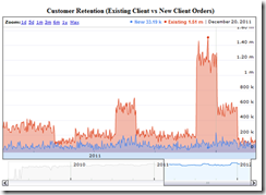 If you work for a commercial organization, you can probably track volumes over time easily enough, but with even some simple programming you can let your imagination run wild. Take a question like customer retention — how many of your clients come back for more, and how often? Is there a pattern? You will be surprised just how many such metrics you can think up in five minutes. Building the data doesn't have to be complex. In most cases it requires no more than a set of phantoms building work files of simple counters against timestamps through the day.